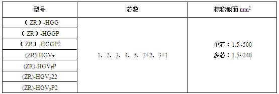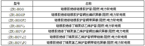 注:型號(hào)中H-硅橡膠電力軟電纜系列代號(hào),