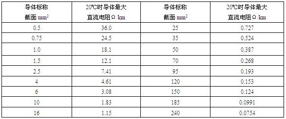 1、20℃時導(dǎo)體最大直流電阻