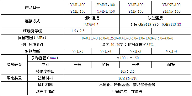 例:YMNF-100 O~1MPa宜徑為100mm,測(cè)壓范圍0~1MPa法蘭連接的壓力表