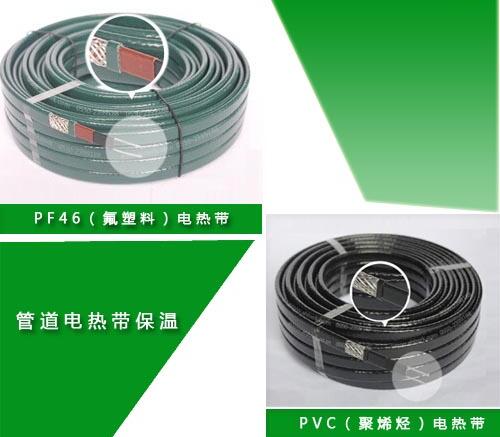 根據(jù)溫度需求首選恒功率電伴熱產(chǎn)品,電伴熱系統(tǒng)電源母線為二根平行的絕緣軟銅線,在內(nèi)絕緣上纏繞鎳鉻電熱絲,并將電熱絲每隔一定距離(即“發(fā)熱節(jié)長“)與母芯線連接,從而形成連續(xù)的并聯(lián)電阻。母芯線通電后,各關(guān)聯(lián)電阻發(fā)熱,因而形成一條連續(xù)的伴熱帶。