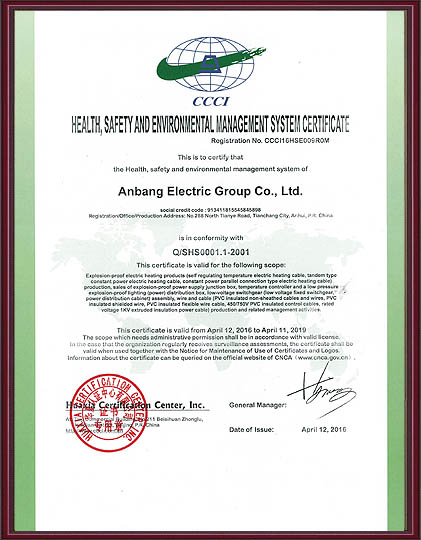 健康、安全與環(huán)境管理體系認證證書英文版